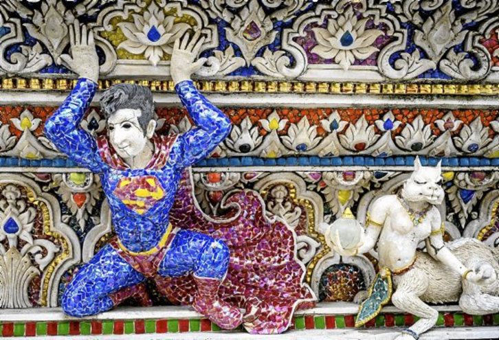Formado por tres templos budistas, Wat Pariwat, en las afueras de Bangkok, no parece diferenciarse de otros similares, pero entre las esculturas que cuelgan de sus muros y decoran sus rincones se hallan figuras históricas como el Che Guevara, deportistas como David Beckham –al templo grande también se le conoce por el nombre del futbolista–, físicos como Einstein y personajes de cómic y cuentos como Superman, Popeye y Pinocho, entre otros.