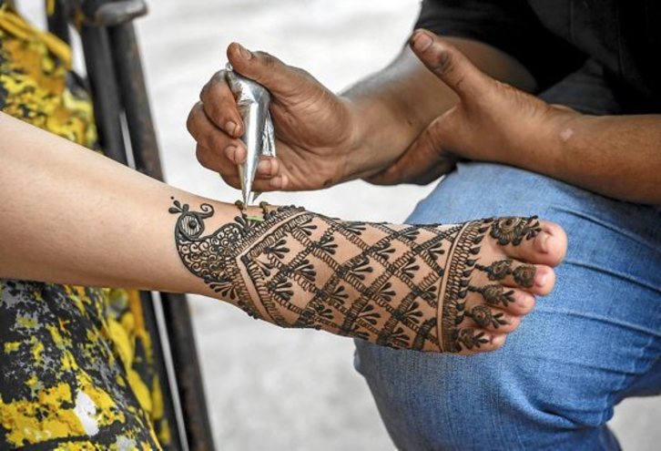 Las mujeres de India y Nepal se preparan para el Teej, el festival del ayuno que anuncia la temporada de lluvias, del agua que da vida. Dedicado a la diosa Parvati, en su unión con el dios Shiva, celebra la felicidad conyugal, así como la purificación del cuerpo y el alma el tercer día después de la luna nueva del mes de Shraavana, a finales de julio o principios de agosto. La víspera, las mujeres se aplican henna en manos y pies y se engalanan para cantar y bailar.