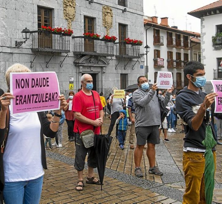 ELA, LAB, ESK, Steilas, EHNE e HIRU se concentraron ayer en Markina-Xemein para reclamar que se depuren responsabilidades por el derrumbe del vertedero de Zaldibar, donde aún buscan a Joaquín Beltrán después de que hace poco menos de dos semanas se hallaran los restos de Alberto Sololuze. Denunciaron que 201 días después siguen sin depurarse responsabilidades por lo ocurrido. Luis JAUREGIALTZO | FOKU
