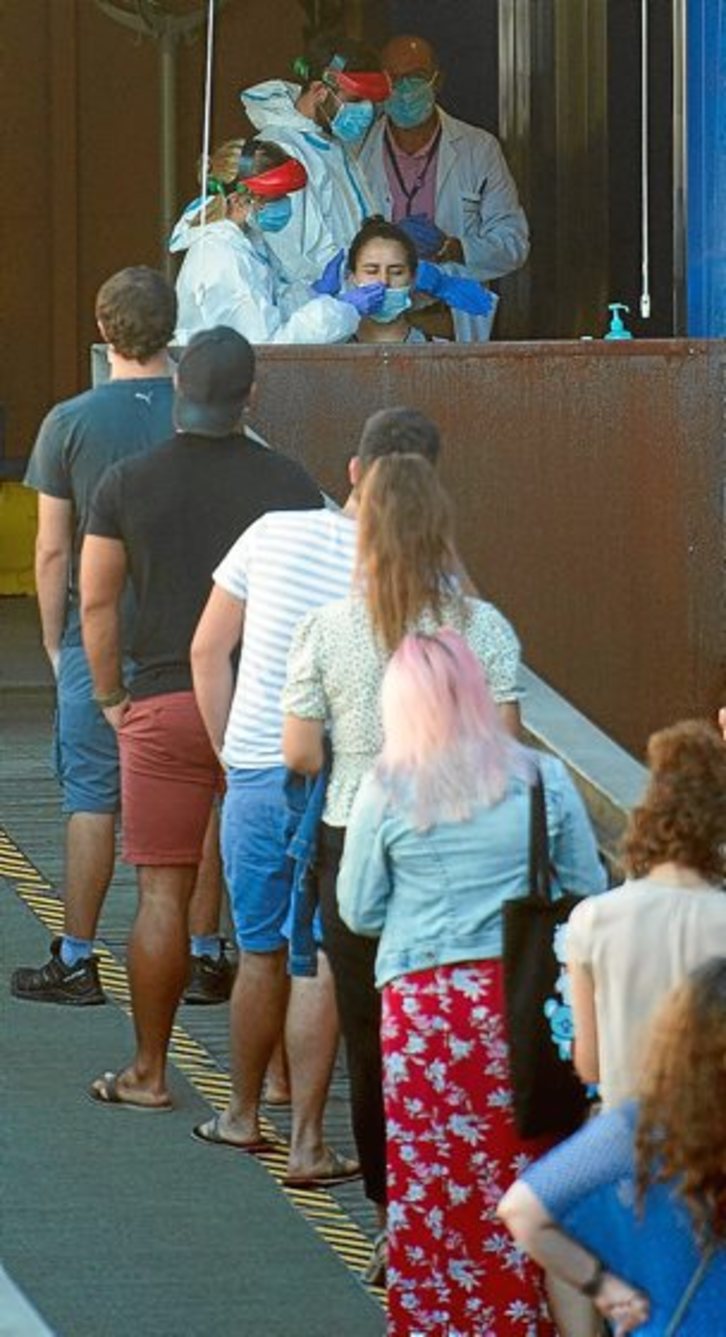 En Araba, la última cifra es de 112 nuevos contagiados, 18 más, y en Gipuzkoa, son 210 test positivos, 15 menos que el jueves. Otros 5 casos correspondieron a personas que no tienen residencia administrativa en la CAV, 8 menos. En Nafarroa se detectaron 161 nuevos contagios, 6 menos que la víspera.