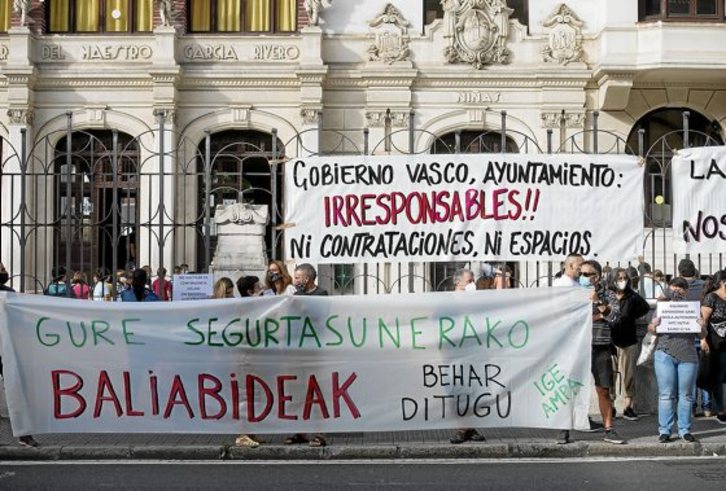 ‘‘Gobierno Vasco, Ayuntamiento: Irresponsables!! Ni contrataciones, ni espacios’’, ‘‘La dejación del Gobierno Vasco nos deja sin comedor’’ y ‘‘Gure segurtasunerako baliabideak behar ditugu’’ eran los mensajes que trataban de transmitir en tres pancartas. Acusan a ambas instituciones de «falta de voluntad política», desvelando que en agosto elevaron una propuesta para tratar de paliar viejas y nuevas carencias que observaban. No ha habido respuesta y los recursos de los que disponen son los mismos que hace seis meses, lo que acrecienta su malestar. «Es intolerable», señalan.