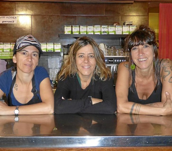 Urteotan aldatzen joan da. Formula eta bazkide kopuru desberdinak izan ditugu, orain hiru emakume gaude –Begoña Burguiño eta Maider Aranburu ditu bazkide– eta oso gustura. Hasieran, taberna ere bazen, gauean parranda pixka bat egiten genuen... Gazteagoak ginen eta hirurak nahiko ezagunak, popularrak. Jende pila etortzen zen kanpotik, lagunak, Bilbotik, Zaragozatik... Beste formatu bat zen. Gero, lokal hau salgai zegoela jakin genuen, eta, bestea txikia geratu zitzaigunez, hona ekartzen ausartu ginen, eta, egia esan, oso ondo.