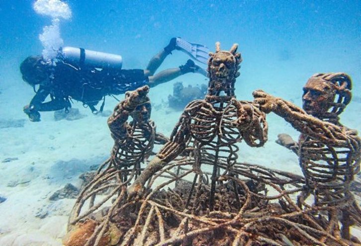 Mientras desde el Pantanal brasileño y desde California continúan llegando imágenes abrasadoras que reflejan los estragos que los incendios están provocando en zonas naturales de gran valor ecológico, desde Tailandia nos ofrecen esta refrescante imagen, que está ligada a la lucha para mitigar el cambio climático. Un buzo nada ante unas figuras de metal colocadas en un arrecife artificial dispuesto para favorecer la conservación de la zona marina de la isla de Koh Tao.
