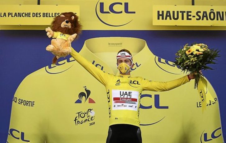 Tadej Pogacar (UAE) dio la sorpresa ayer al ganar la crono de 36,2 kilómetros con la ascensión a La Planche des Belles Filles (5,9 kms. al 8,5%), en la que no solo recuperó los 57 segundos de diferencia con los que partía Primoz Roglic, sino que le aventajó en un minuto más para dejar en evidencia la estrategia del Jumbo durante toda la carrera.