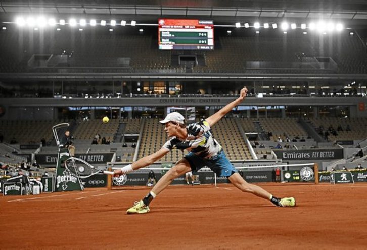 Más vale tarde que nunca. Roland Garros 2020 se puso ayer en marcha varios meses después de su habitual inicio. El partido se jugó en condiciones otoñales, como las que se auguran para los próximos días, lo que obligó a los organizadores a cerrar el techo de la pista central por primera vez en su historia. Y ahí ocurrió la primera sorpresa de esta edición, ya que el belga David Goffin, undécimo cabeza de serie, fue eliminado por el joven italiano Jannik Sinner, de 19 años, por 7-5, 6-0, 6-3.