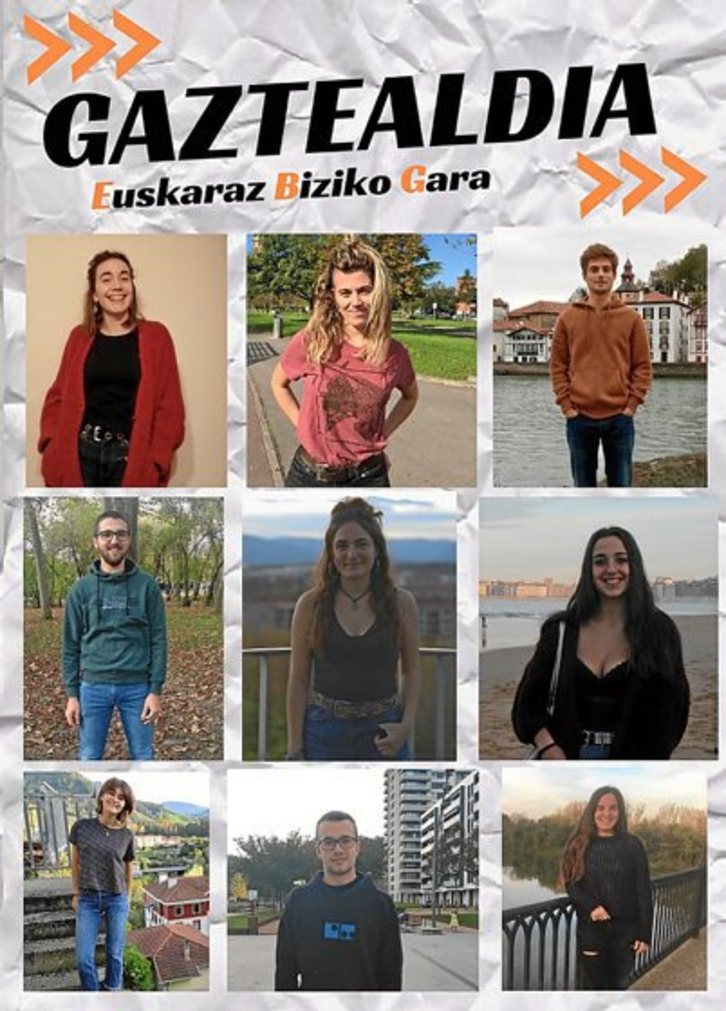 Gaztealdia izena hartu duen ekimenean, Sodupe, Zornotza, Deustu, Plentzia, Lasarte-Oria, Iruñea, Tutera, Donibane Lohizune eta Urepeleko bederatzi gaztek hartuko dute parte. Ekimena Bizkaiko Topa Gaitezenek, NUPeko euskara taldeak, Ibaetako unibertsitate campuseko Iep! euskara taldeak, Gasteizko EHUko euskara taldeak, Baionako Bernart Etxepare lizeoko Ikasle Asanbladako euskara taldeak, eta Galdakaoko Bagabiz euskara elkarteak bultzatu dute.