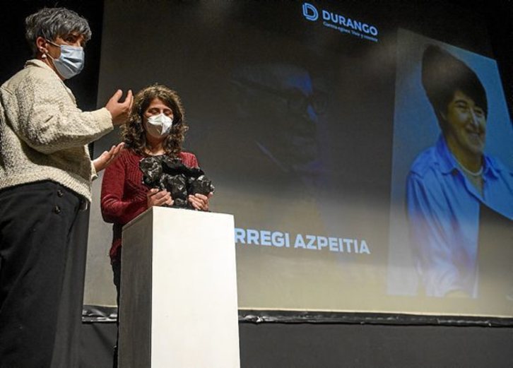 La iniciativa de nombrarla Hija Adoptiva partió de 18 personalidades de Durango. Entre ellas, el editor, intelectual e impulsor de la cultura vasca Leopoldo Zugaza y su hijo, Miguel Zugaza, actual director del Bellas Artes de Bilbo y antes también director del Museo Reina Sofía de Madrid. Seguro que Leopoldo Zugaza, que no pudo estar presente debido a su delicado estado de salud, tendría muchas historias que contar sobre Gurutzi Arregi, con la que creó aquella asociación cultural llamada Gerediaga, de la que surgió la Azoka de Durango.