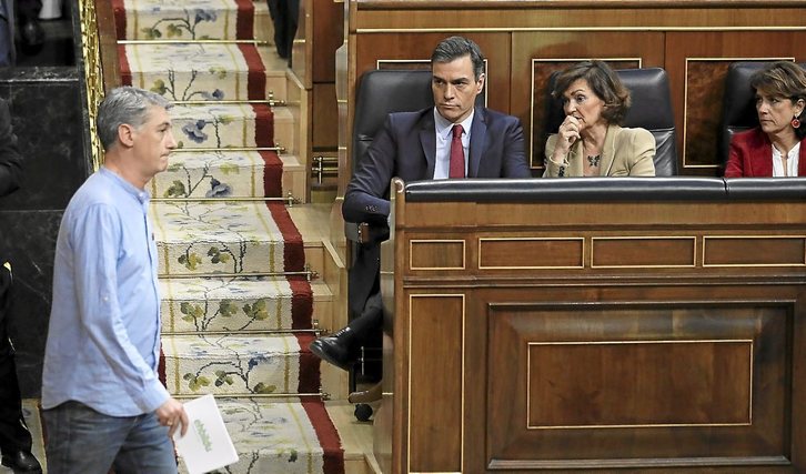 Pero, más allá del caso general, en esta votación ha ocurrido algo también histórico en lo que hace a Euskal Herria. En Gipuzkoa y Araba todos sus representantes han votado a favor de los PGE, en Bizkaia todos menos una (la del PP) y en Nafarroa la mayoría (tres de cinco). La CAV es así la autonomía en que más apoyo han tenido las cuentas. La votación de los PGE ha puesto aquí en el mismo equipo a un grupo heterogéneo como PNV (6 escaños), PSE (4), EH Bildu (4) y Elkarrekin Podemos (3). No solo son 17 de los 18 diputados sino que también suman el 86% de los votos de las últimas elecciones estatales.