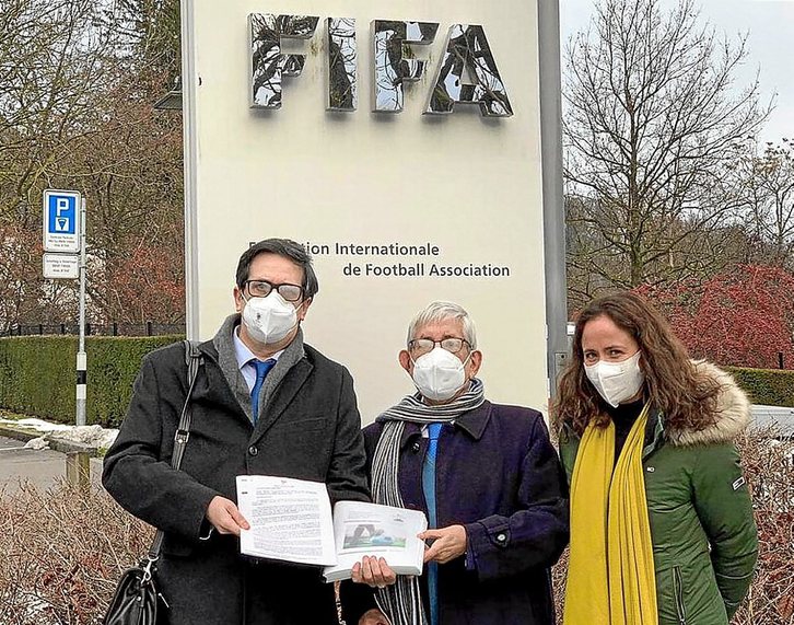 El presidente Luis Mari Elustondo y la vicepresidenta Nerea Zalabarria acudieron a las sedes de la FIFA en Zúrich y la UEFA en Nyon acompañados por el director de Deportes de Lakua, Jon Redondo, y el abogado David Salinas-Armendariz.