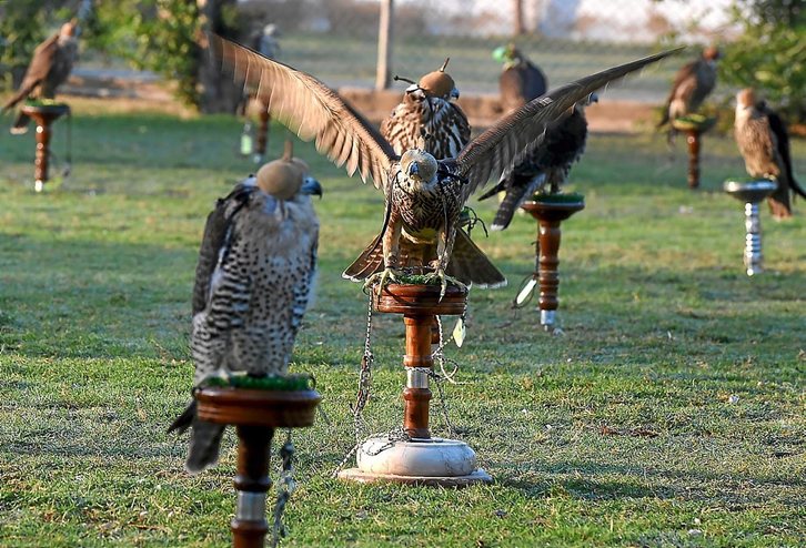 Pakistán es el centro neurálgico del comercio de halcones, como vivero para lograr estas aves y como lugar donde ir a cazar con esta rapaz. Capturar halcones está oficialmente prohibido, pero la creciente demanda en los países del Golfo está fomentando las redes del crimen organizado ya que supone una fuente de grandes ingresos. Muchos halcones vuelven después de cada invierno a los desiertos paquistaníes con príncipes del Golfo para vastas cacerías de hubara, una especie de ave amenazada.