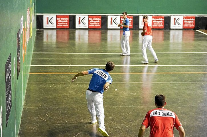 Eta Elezkano ere oso fin ibili zen. Aurrean izan zituen aukera ia denak baliatu zituen tantoa amaitzeko, zehaztasun ikusgarriz. Zaratamoko aurrelariak zortzi tanto egin zituen jokoan, beste bi sakez, eta galdu zuen lehen pilota 6-19an txapara joan zitzaion horma-biko bat izan zen –geroxeago beste batek alde egin zion 8-21ekoan–.