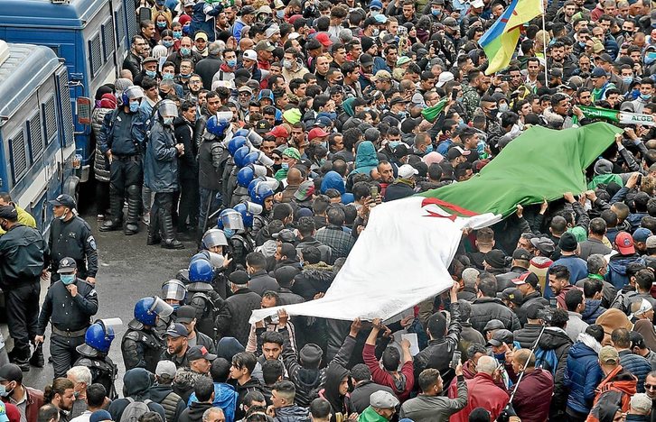 Miles de personas se manifestaron ayer en Argel y llevaron a cabo concentraciones en otras ciudades del país, por el segundo aniversario del Hirak, el movimiento popular que revive después de un año de interrupción por la crisis sanitaria.