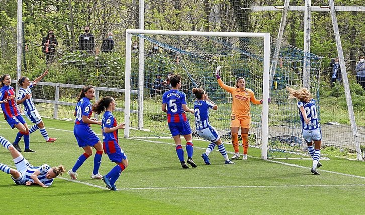 El Eibar les ha cogido gusto a los derbis. Ganó en Lezama, empató con la Real en Unbe en un buen partido y ayer encontró en Zubieta el punto de inflexión que necesitaba tras haber sumado sólo tres puntos en las diez jornadas anteriores. Lo hizo a costa de una Real que atravesaba su mejor momento pero que se encontró con Malena y los palos.