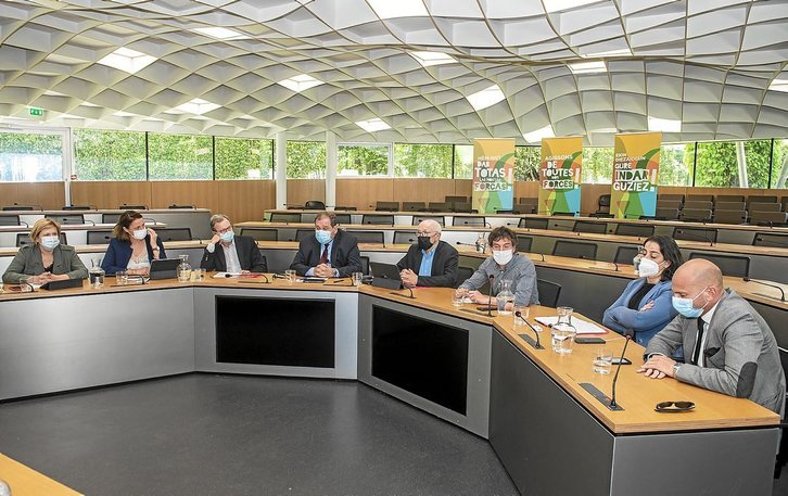Electos vascos en París, en la Región de Nueva Aquitania y en el Departamento de Pirineos Atlánticos secundaron la comparecencia presidida por el presidente de la Mancomunidad Vasca, Jean-René Etchegaray.