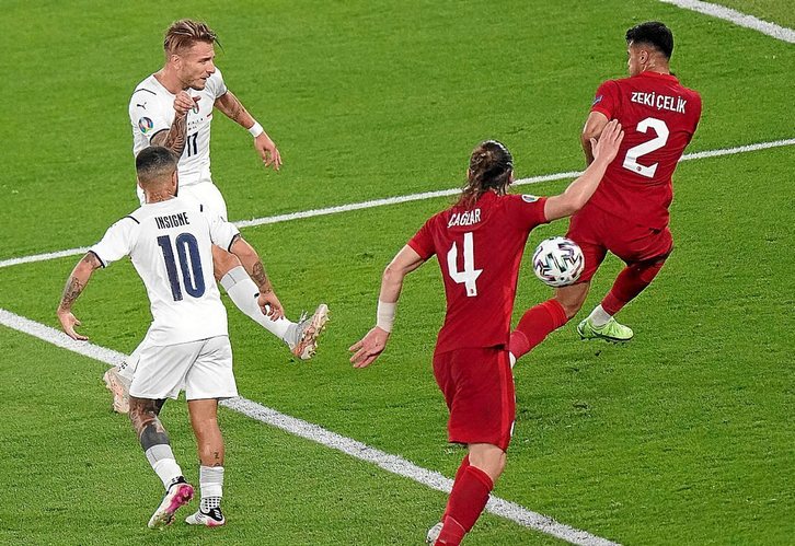La estrategia turca se derrumbó finalmente al inicio de la segunda parte con un autogol de Demiral, que provocó el hundimiento de una escuadra turca de la que se esperaba bastante más. Con el electrónico a su favor, Italia ya jugó a placer, disfrutando de los huecos que fue dejando el conjunto otomano. Los aprovecharon los dos futbolistas más determinantes del equipo transalpino, Immobile e Insigne, con sendas dianas rematando dentro del área rival.
