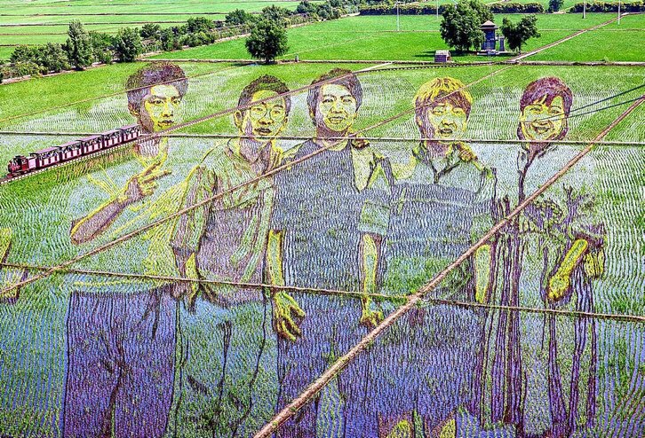 Los agricultores de Shenyang, capital de la provincia de Liaoning, en el noreste de China, han «dibujado» un año más enormes obras de arte en sus campos de arroz. Desde una imagen conmemorativa del centenario del PCCh a la representación de una deidad, pasando por un grupo de jóvenes. El uso de los arrozales como lienzo se ha convertido con los últimos años en una forma de promover el turismo, aumentando así los ingresos de los campesinos. Para realizar estos dibujos, emplean distintas variedades de arroz.