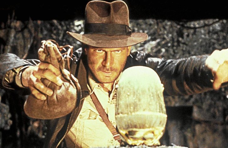 Años más tarde, en otra jungla llamada Hollywood, donde sus habitantes rinden culto al dios Dólar y dedican sus plegarias a la diosa Taquilla, se escenificó otra leyenda nacida alrededor de una mesa. Uno de los comensales dijo a quien tenía a su lado «¿Serías capaz de iniciar una película con un hombre al que le persigue una piedra?». El otro, que atendía al nombre de Steven Spielberg, le respondió «¿Por qué no?». Realidad o leyenda, el caso fue que la diosa Taquilla sonrío el resultado de aquella apuesta que llevó por título “En busca del arca perdida” y que daría inicio a una fenomenología tejida alrededor de su protagonista, el arqueólogo y aventurero Indiana Jones.