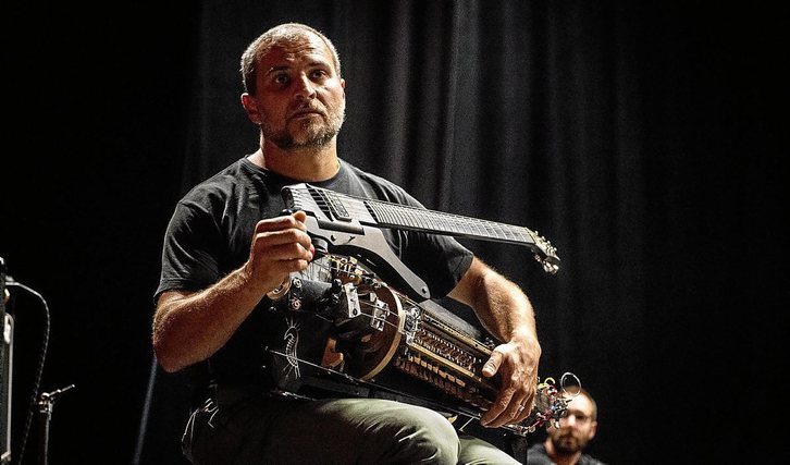 Es un instrumento quimérico que inventé hace diez años y que une una zancona y una guitarra eléctrica superpuesta, y ambas entran en resonancia. La idea es crear música con los dos instrumentos, sin pasar por loop de efectos u ordenadores.