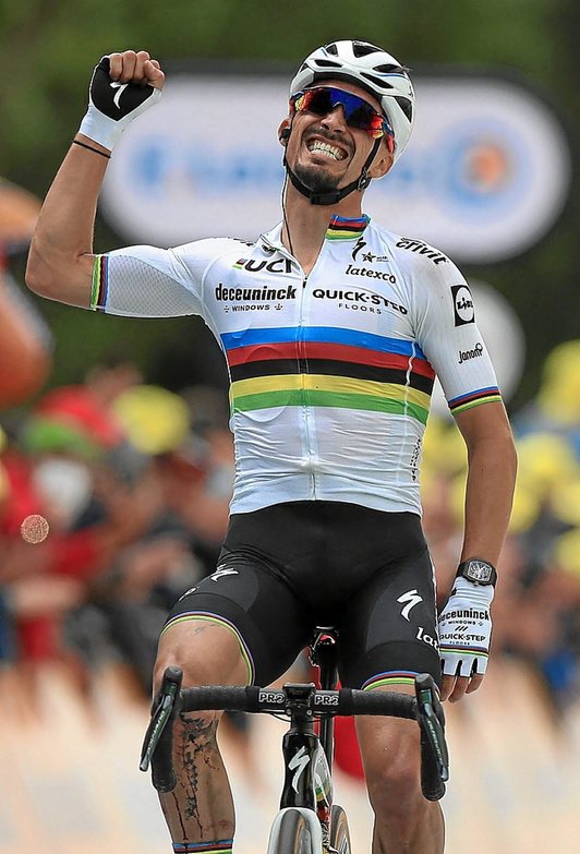 El campeón del mundo llegó con ocho segundos a un grupo encabezado por Matthews y Roglic, que sumó cuatro segundos de bonificación, y pudo dedicar a su hijo recién nacido Nino, la madre es la ex-ciclista Marion Rousse. Su sexta victoria en el Tour le permitió volver a vestirse de amarillo como hizo en 2019, cuando sumó dos triunfos, fue catorce días líder y acabó quinto en la general.