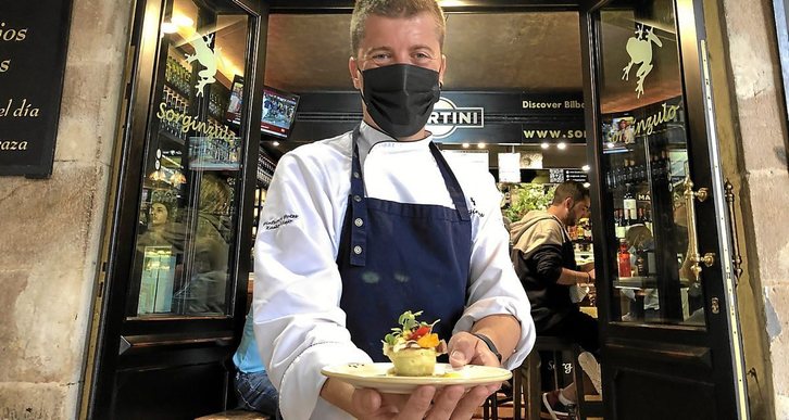 Iñaki Lazkano, del bar Sorginzulo, se ha proclamado ganador del Campeonato de Pintxos de Bizkaia 2021 con su creación «Fish-Kaia», elaborado con unos ingredientes «muy bilbainos» y «muy de aquí». Pero no es este el único galardón obtenido por este bar de la plaza Nueva.