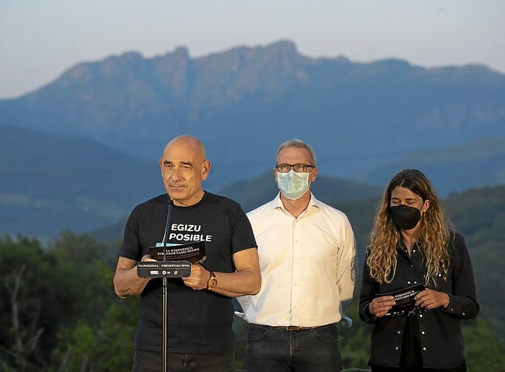 La localidad guipuzcoana de Errenteria, desde una atalaya con vistas a Aiako Harriak, acogió ayer por la noche la presentación de Vía Pirenaica 2022, una iniciativa que unirá el verano que viene el Cantábrico con el Mediterráneo. Lo hará iluminando más de 400 cumbres de la cadena montañosa para reivindicar la libertad y el derecho de autodeterminación de Euskal Herria y Catalunya. Será organizada por diferentes organizaciones sociales.