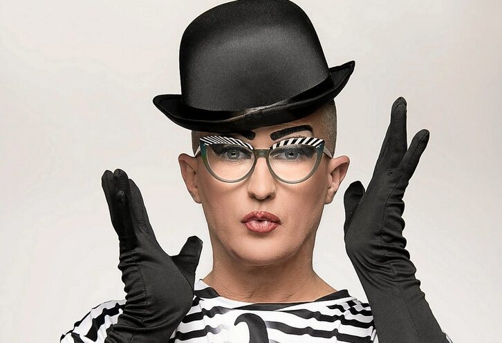 ¿Qué soy? Es complicado, porque yo no soy nada ahora mismo. Tengo esa sensación de estar en un limbo, y no me importa, porque no saben cómo clasificarme. A nivel laboral es peligroso, porque solo se acuerdan de mí cuando llega el Orgullo. Estoy en un momento como de indefinición: no soy teatrero, pero hago teatro; no soy fotógrafo pero algo fotos; soy hombre, pero me visto de mujer; no soy cantante pero hago canciones; no soy diseñador, pero hago camisetas. Y todo es así: no soy travesti, no soy transformista, no soy drag queen… Te explico: transformista puede ser un chico o una chica que hace un personaje, que se transforma en una persona, pero no hay un tema sexual por medio, de disforia de género o lo que sea. A ti, por ejemplo, te gusta Marilyn Monroe y te transformas en ella: eres transformista. Una travesti tiene ya un componente sexual, de rollo femenino, que yo a veces reivindico, aunque no me sienta mujer. Ha tenido siempre un componente tan negativo que siempre lo reivindico. Y drag tampoco soy. Me llamaron el otro día para “Drag Race” [programa de televisión que es la réplica estatal del famosísimo en EEUU de la drag RuPaul] y, tras una hora de teléfono, no me entendieron. Les dije que yo no encajaba allí y que sí que me podían llevar un día, porque soy la primera drag queen del planeta que ha hecho una canción para niños sobre diversidad. Sí que hay drags que van a colegios a contar cuentos, pero una canción ex profeso para ellos, creo que soy la única que lo ha hecho. Yo les expliqué que no me interesa el vestuario por el vestuario, sino contar cosas. No encajo en ningún sitio, pero soy feliz.