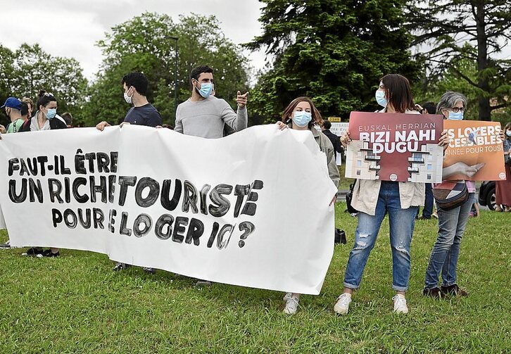 Ipar Euskal Herrian bizitzeko eskubidea bermatzeko, bai eta espekulazioa geldiarazteko ere, «borondate politikoa» galdegin diete ehun eragilek, hain zuzen, etxebizitza arloan ari diren eragile guztiei. Atzo plazaraturiko agirian hainbat neurri iragarri dituzte, «etxebizitzen eta lurren merkatuaren erregulazioa» defendatuz.