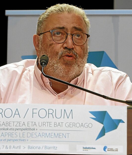 Celebró como un artesano más la Jornada de Desarme del 8 de abril de 2018 en Baiona, combinando palabras y ojos humedecidos en la tribuna, en un acto de obediencia civil a la paz y de desobediencia ante el desánimo que serviría de antesala de la desaparición de ETA, un año después.