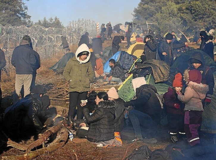 Según los guardias fronterizos de Minsk, estos migrantes ahora apiñados en un campamento improvisado en el lado bielorruso, no lejos de la aldea polaca de Kuznica, se encuentran en un estado físico y sicológico «extremadamente malo», especialmente por falta de agua y comida.