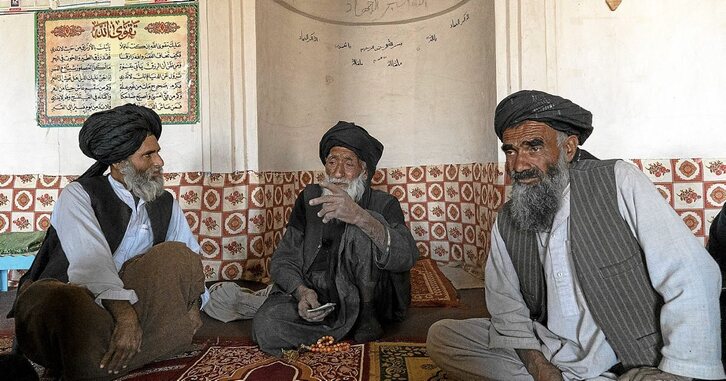 «Fui yo quien recibí a los dos mullahs, Omar y Baradar. Comían conmigo cada noches. Se quedaron meses con mi familia. Eran gente muy humilde, sencilla y amable», recuerda Haji Faiz. Es muy mayor. Camina con un bastón y está medio sordo. Hay que gritarle las preguntas: «Yo también luché con él. Luego, cuando se convirtió en nuestro rey, nuestro líder, desapareció. Un día volvió. Se me acercó y me saludó diciendo: ‘Eras mi amigo, el que me acogió hace años’. Le respondí: ‘Sí, pero ahora ya no eres mi amigo porque nunca apareciste’». El tono en el que habla hace reír a la gente. Lacónico y picante. Cuando se aburre, se queda callado. «Era un personaje muy carismático. Todos querían escucharle». Son las palabras de otro compañero de armas, Mohammed Hashim. En aquellos años, en una provincia remota del sur de Afganistán, la mezquita era vital para la comunicación. Era el punto de referencia, como todavía lo es en muchas partes del país.