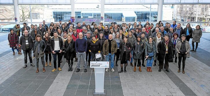 Alrededor de un centenar de personas, entre ellas profesores, padres y madres, personal de centros escolares o monitores de grupos de tiempo libre, que conforman la plataforma Hezkuntza Plazara, se reunieron ayer al mediodía en Hernani para compartir sus propuestas sobre el Acuerdo Educativo de Euskal Herria. En un acto público tras ese encuentro, destacaron la necesidad de renovar el borrador que se discute actualmente en la CAV e instaron a responder «como pueblo» a los grandes retos que vienen.