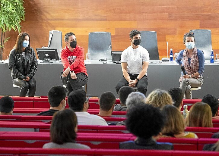 Quienes saben lo que es trabajar en un sector tan masculinizado como el de la Construcción (en el Estado español, el 90,4% de los trabajadores son hombres) son las que están a pie de obra, brocha en mano, cableado al frente u hormigón a la espalda. La oficial de reformas Suany Soriano, la albañil Aintzane Murillo, la electricista Saioa Izagirre y la pintora Ane Zabala confesaron inseguridades y haber recibido comentarios malintencionados, pero quisieron convencer al público, en su mayoría estudiantes, de que la construcción merece la pena.