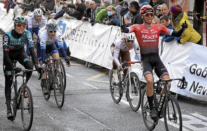Warren Barguil dio ayer al Arkéa su octava victoria de la temporada que le va a catapultar al World Tour en 2023 en un Gran Premio Miguel Indurain diferente al suprimir la organización el paso por todos los puertos puntuables por el riesgo que suponía la presencia de la nieve y por las bajas temperaturas, lo que llevó a realizar la carrera por un recorrido alternativo más suave y con menos riesgos.