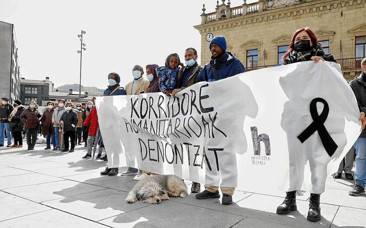 Irungo Harrera Sareak elkarretaratzea egin zuen atzo herriko San Juan plazan, Bidasoko uretan zendu den azken migratzailea, Ibrahima Diallo, gogoratzeko. Asteazkenean topatu zuten gaztearen gorpua, desagertu eta hiru astera. “Korridore humanitarioak denontzat” lelopean egindako protestarekin Bidasoa ez dadila izan «izenik gabekoen ibaia» eskatu nahi izan zuten.