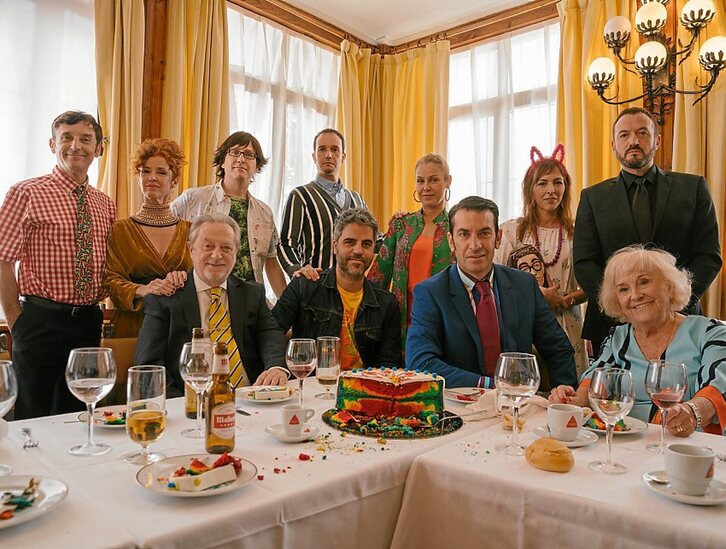 Algo así no surge por generación espontánea, y supongo que de entrada habría un plan para subvertir el material que les venía impuesto. Pero viendo la película la sensación es la de que al principio intentan ser hasta cierto punto fieles al menos a los personajes originales, pero llega un momento en que es como si se dieran cuenta de que la la historia no iba a ninguna parte y deciden sabotearla de golpe, haciendo que estalle por los aires en mil pedazos. El giro sobreviene abruptamente con la tarta alucinógena de cumpleaños, y a partir de dicha escapada lisérgica ya todo se vuelve una locura descontrolada que culmina con el concurso Bewer entre la delagación local y la portuguesa, la cual se dedica más a cantar fados, lo que iguala las posibilidades del duelo con guillotinas de cortar papel entre la tarantiniana Ana Milán y un ocioso Arturo Valls.