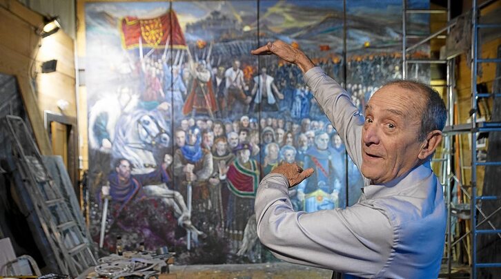 «Respeto mucho las opiniones de la gente. Y hay muchas personas que me preguntan en la calle por el cuadro y por cuándo se podrá volver a ver. Llevo toda la vida pintando y he hecho muchas obras, pero la gente me pregunta por este cuadro. Era un imagen necesaria para Navarra y para mucha gente debido al desconocimiento que hay sobre la propia historia», indica el artista, que se muestra satisfecho porque en los últimos veinte años una nueva generación de historiadores ha sacado a la luz la Nafarroa que habían tratado de ocultar.