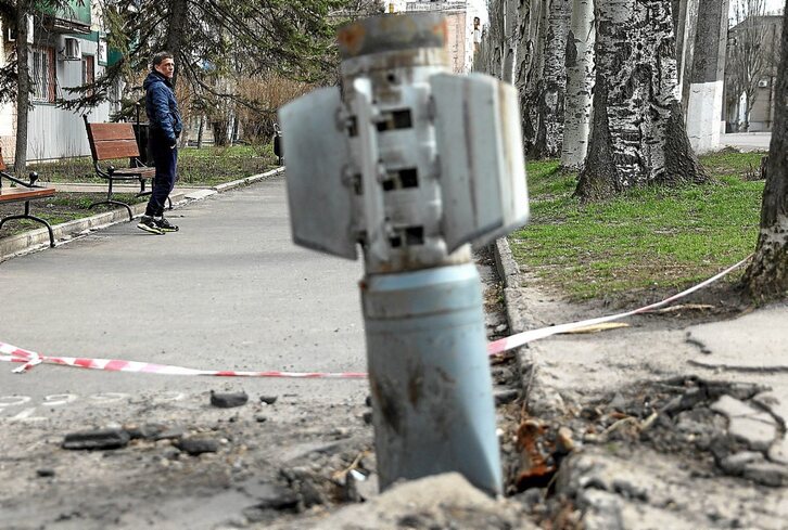Las fuerzas prorrusas de Donetsk afirmaron haber tomado ya por completo la zona portuaria de Mariupol, tras el asedio de más de un mes, lo que deja a las fuerzas de Kiev reducidas a los grandes complejos fabriles Azovstal y Azovmach. Entre estas, la 36 brigada de la Marina anunció en Facebook que «hoy será probablemente la última batalla porque las municiones se agotan. Será la muerte para algunos y el cautiverio para otros». Indicó que están rodeados y con la mitad de sus miembros heridos. Además, lamentó la falta de ayuda del presidente, Volodymyr Zelensky, por las «promesas incumplidas» y el escaso armamento recibido. Mientras, la ofensiva rusa esperada en el este está ya muy próxima según el líder prorruso de Donetsk, Denis Pushilin, y el Ejército ucraniano, que informó de varios ataques rusos en Donetsk y Lugansk, así como de al menos 66 bombardeos en 24 horas en Jarkov, que causaron al menos 11 muertos. Zelensky anunció que «esta semana a ser muy dura» a tenor de los preparativos del Ejército ruso para actuar en la región de Dnipro. También EEUU prevé que la llegada al mando de la ofensiva rusa de Alexandr Dvornikov, curtido en la guerra de Siria, augura «más atrocidades». Moscú dijo además que en un ataque en la provincia de Dnepropetrovsk destruyó un sistema antimisiles donado por un país occidental, posiblemente el S-300 de Eslovaquia.GARA