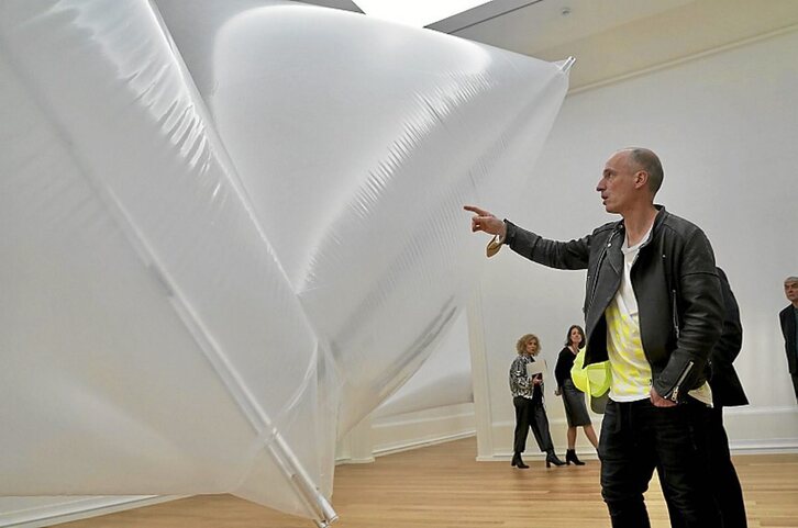El artista Sergio Prego inauguró ayer una colección de esculturas titulada ‘Trece a Centauro’. La obra está formada por catorce módulos neumáticos que llenarán, mientras duren las labores de ampliación, hasta diez salas contiguas del Museo Bellas Artes de Bilbo.