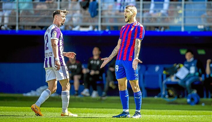 Quizá fuera esa mayor necesidad la que empujó a los castellanos a imponerse de inicio a un Eibar sometido, que se las arregló a duras penas –en el 25 ya tenían tarjeta los dos centrales– para que el peligro en el área de Cantero no fuera excesivamente claro, pero que no inquietó a Masip. Al menos durante la primera media hora, en la que el balón no le duraba un suspiro y los hombres de ataque parecían atolones perdidos en mitad del Pacífico.