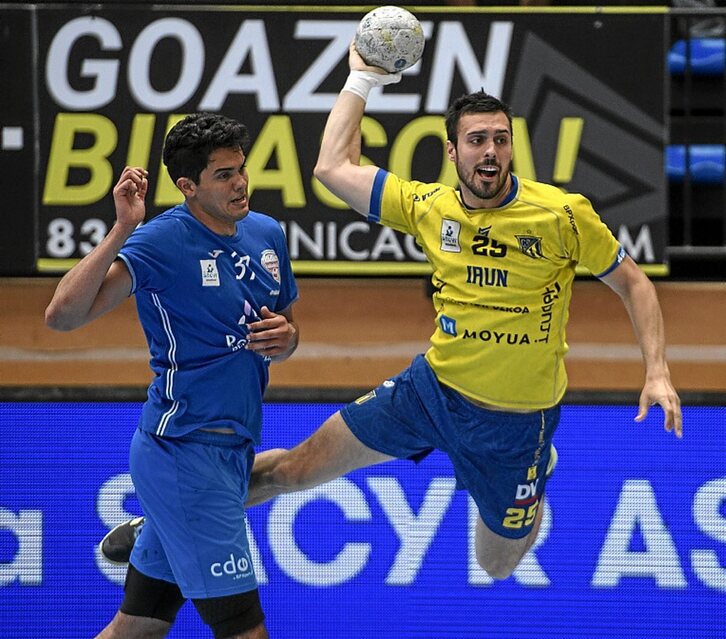 La figura del meta de Lalín se agigantó aún más, encadenando varias intervenciones de mucho mérito a las que en ocasiones dio continuidad siendo el lanzador del contragolpe, lo que propició el despegue de un Bidasoa-Irun que, con un parcial de 6-0, estableció su máxima ventaja superado el ecuador (14-6), momento en el que David Pisonero decidió parar el tiempo.