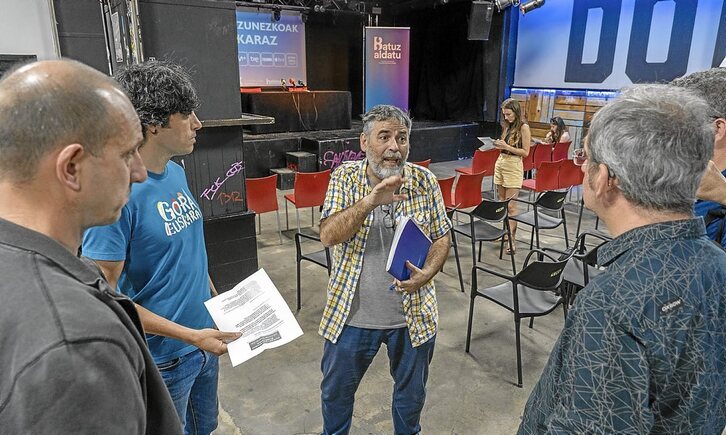 Ostegunean espainiar Kongresuak Ikus-entzunezko Lege berriaren eztabaidari ekingo dio, eta horren atarian, Kike Amonarriz, Euskaltzaleen Topaguneko lehendakaria; Iban Arantzabal, Tokikom-eko presidentea; Igor Astibia, Hekimen-eko koordinatzailea; Alex Aginagalde, Pantailak Euskaraz-ko bozeramailea eta Paul Bilbao, Euskalgintzaren Kontseiluko idazkari nagusia, elkartu ziren Donostian.