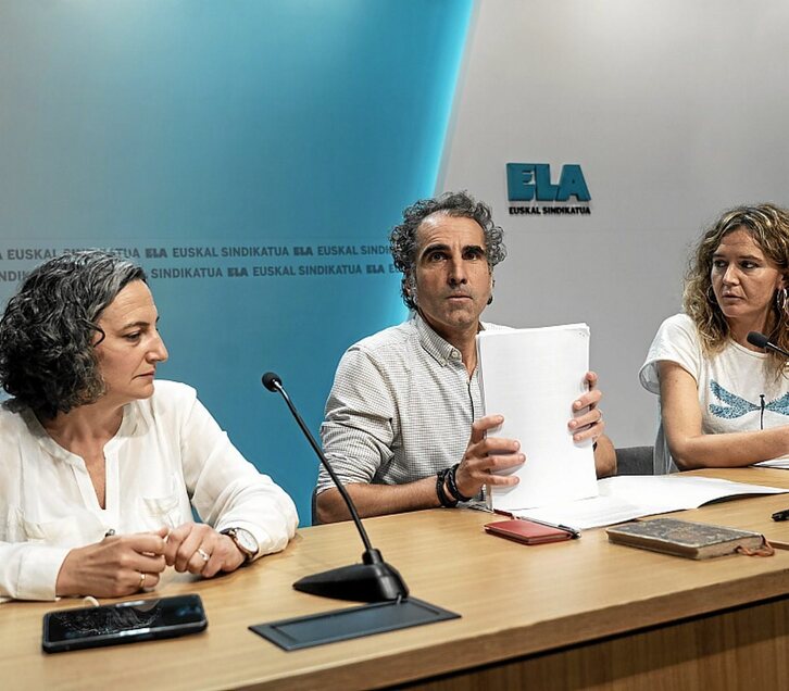 ELA denunció ayer, en comparecencias en Iruñea y Bilbo, los procesos de estabilización del empleo público de los Gobiernos de Iñigo Urkullu y de María Chivite. En ambas, acusaron a estos Ejecutivos de ser las mayores ETT del país.