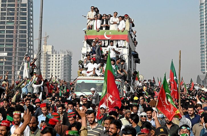 Al mismo tiempo, ha puesto en marcha una campaña de movilizaciones para intentar revertir la situación. Con un discurso que algunos tildan de populista, sigue manteniendo que «la conspiración extranjera se ha unido a los sectores corruptos del país» para derrocarle. Su peligroso cóctel dialéctico, que incluye un exagerado patriotismo, la defensa de un Naya Pakistan (Nuevo Pakistán), el uso de la religión y su ascendiente en algunos sectores militares, tanto en activo cono retirados, puede abrir la puerta a una violencia política que siempre ha estado presente en el país.
