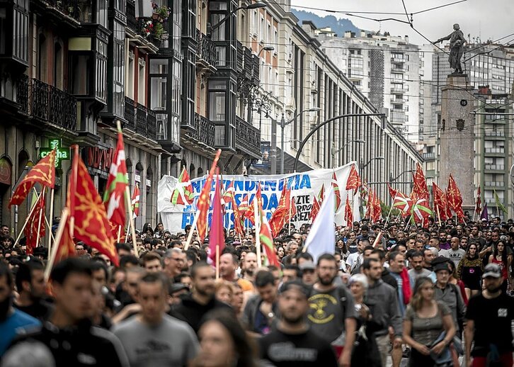 Milaka pertsonak hartu zuten parte 17.30ean hasi eta Bilboko Kale Nagusian ibili zen martxan. Ibilbidean, polizia ugari izan zen, eta BBVAren sukurtsalaren parean, Kale Nagusian, neska gazte bat identifikatu zuen Ertzaintzak kartelak jartzeagatik. Plaza Biribilera iritsita, manifestariak Buenos Aires kaletik jaitsi ziren. Colon de Larrategui kalearen izkinan, Albia lorategietara eta, beraz, Sabin Etxera sartzen den tokian, Ertzaintzako hainbat furgoik bidea ixten zuten, ibilbidetik desbideratzea saihesteko. Arazorik gabe, baina lehenengo euri tantekin heldu zen gazte multzoa Arriga Plazara, non Ernaiko kideek komunikatua irakurri zuten. «Ez gaituzue geldituko. Argi eta garbi utzi dugu gaur, argi utzi diegu gure egoeraren erantzule diren arduradun politiko zein borradun matoi mozorrotuei», adierazi zuten.