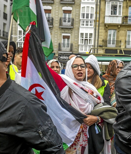 Dozenaka herritarrek ongietorri beroa egin zioten atzo Gasteizko Andre Maria Zuriaren plazan Sultana Jaya ekintzaile sahararrari. Bisita Sahara Koordinazio Unitateak antolatu du, Arabako SEADen Lagunen Elkartearekin eta Saharako Diasporarekin batera. Sultana Jaya giza eskubideen aldeko ekintzaile sahararra da, eta urte eta erdi baino gehiagoz atxilotu zuten bere etxean, legezko justifikaziorik gabe. Egunotan, Mendebaldeko Sahararen gaur egungo egoera azaltzen ari da Euskal Herriko hainbat txokotan, hitzaldien bidez. Jaizki FONTANEDA | FOKU