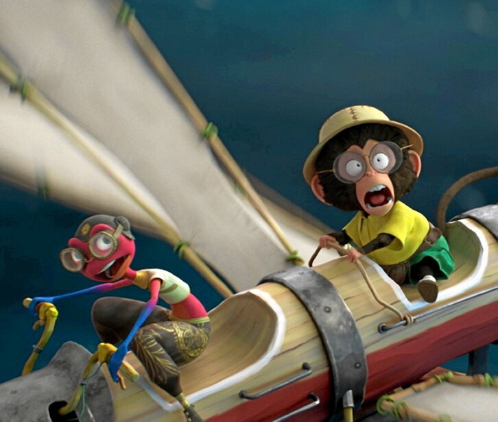“Los buscamundos” es una inofensiva y desenfadada relectura en clave anfibia diseñada para disfrute de los espectadores más jóvenes. Vista la gran competencia que existe dentro de los territorios de la animación 3D, Tourneux ha apostado por un estilo lindante a lo artesanal, lo cual aporta a sus escenas un toque evocador. Más allá del rol protagonista de un Fogg con ancas y que para la ocasión ejerce de buscavidas aventurero, quien ejerce de hilo conductor directo con la novela es su fiel acompañante Passepartout. Ahora es un pequeño mono apasionado de la lectura y que suspira con la idea de disfrutar de miles de aventuras, a pesar de su superprotectora madre.