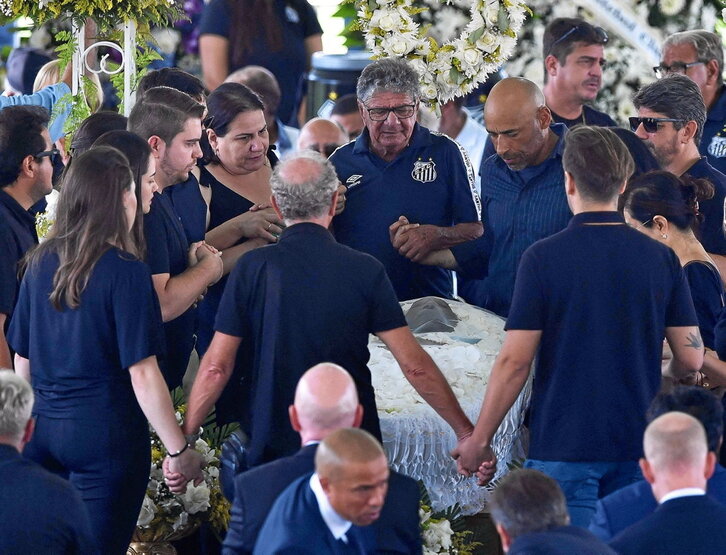 Los actos de despedida a Pelé, fallecido el jueves a los 82 años, comenzaron ayer y se dilatarán hasta la jornada de hoy. El velatorio se dispuso en el césped del estadio Vila Belmiro, en la ciudad de Santos, donde “O Rei” jugó como local la mayor parte de su carrera. Familiares, personalidades del mundo del fútbol y aficionados le dieron su último adiós mientras en la megafonía del estadio se oía una canción de samba llamada “Eu sou Pelé” (yo soy Pelé), interpretada por el exjugador. Hoy, el cortejo pasará por la zona del Canal 6, donde vive la madre de Pelé, Celeste Arantes, que tiene 100 años. Nelson ALMEIDA | AFP