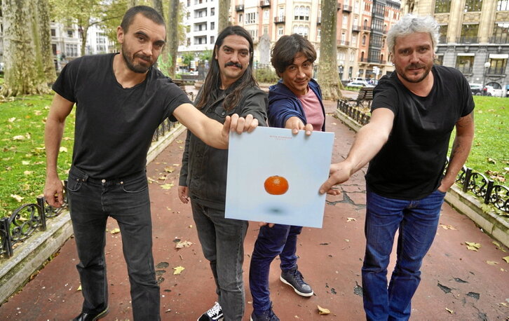 Ez, ez: ez dago halako kanpo erreferentziarik. Mandarina hori hor egoteko bi arrazoi daude. Bata estetikoa da: diskoaren azala nola egin pentsatzen hasi ginenean Gillaume Fauveau etorri zen eta gure argazki bat jartzea pentsatu genuen, 70eko hamarkadan egiten zen moduan. Baina ohartu ginen asko maite genuela Andy Warholek The Velvet Undergroundi egindako bananaren diskoa, baita Wilcoren azala ere, katu batekin. Gustatu zitzaigun ‘katuaren edo bananaren diskoa’ bezalako identifikazio mota, ikonikoa delako, eta gure lehen kantan mandarina aipatzen denez, hura hautatu genuen. Bigarren arrazoia horixe da: ez dela kasualitatea. Mandarina aipatzen den unean, mandarinak zer sinbolizatzen duen aipagarria da.