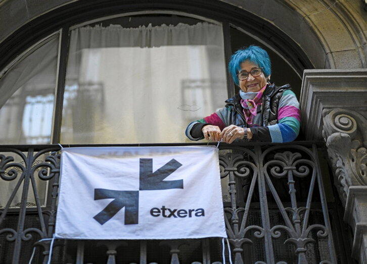El nuevo símbolo, formado por dos flechas que confluyen y la leyenda “Etxera”, viene a sustituir al ya histórico “Euskal presoak eta iheslariak Euskal Herrira”, que ha ondeado durante más de veinte años en balcones, ventanas y acontecimientos.
