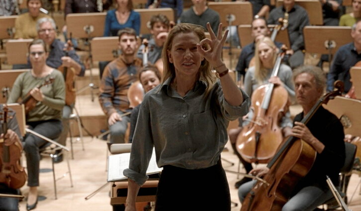 De alguna manera, se puede decir que Cate Blanchett ayuda al público no entendido en la materia, que tal vez ni conozca la Quinta de Mahler, a no perderse dentro del nivel de exigencia de la película. De entrada comienza con una entrevista que le hace a la tal Lidya Tár, directora de la Filarmónica de Berlín, el periodista Adam Gopnik, y que sirve como introducción al mundo orquestal.